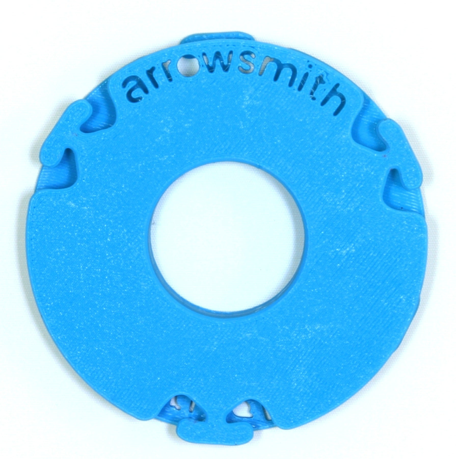 To operate, hook one loop of your string on the StringRing side. Wind the string around the centre of the unit and hook the other end loop on the arrowsmith side of the unit. To tighten the fit of the string, turn the arrowsmith side of the unit following the direction of your string. You will hear the gears click into place. This prevents the parts from moving freely and letting the end loops slip off the hooks.